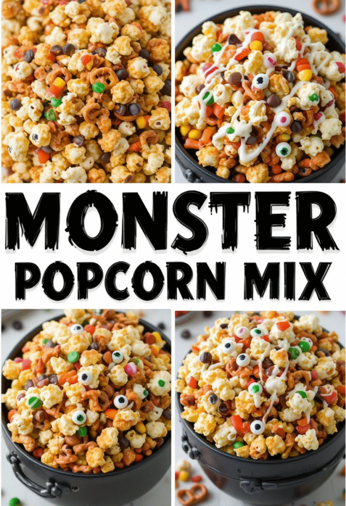 Popcorn is the ultimate movie snack, but for Halloween, it deserves a festive twist. Create a monster popcorn mix by combining freshly popped corn with candy corn, pretzels, chocolate chips, and colorful candy-coated chocolates. Drizzle melted white chocolate over the top and add candy eyeballs for that spooky “monster” vibe.