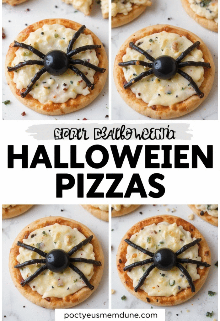 Mini pizzas are always a crowd-pleaser, but you can give them a Halloween makeover. Use black olives to create little “spiders” on top of the cheese. Slice one olive in half for the body, then cut another into thin strips for the legs.