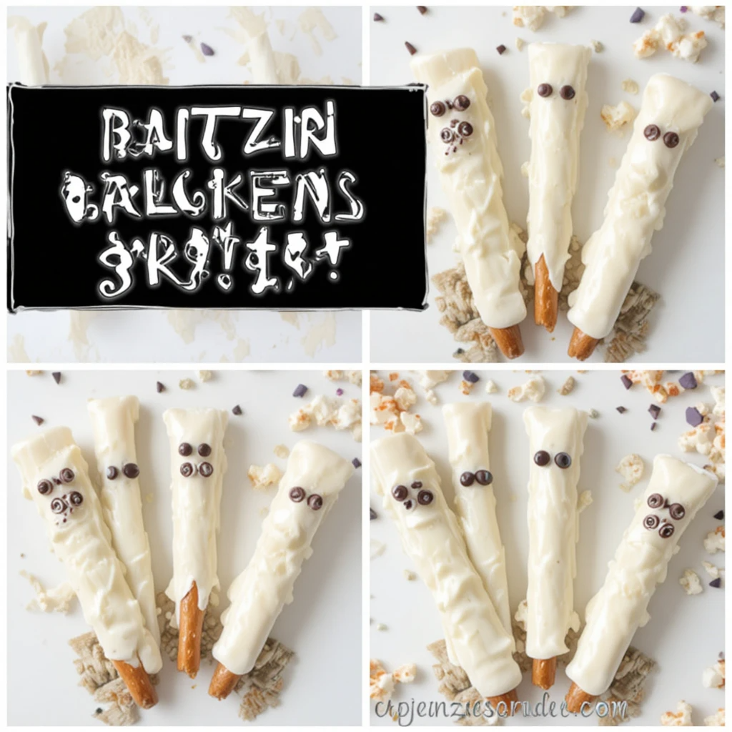 Dip pretzel rods or twists into white chocolate and decorate with mini chocolate chip eyes to create adorable ghost pretzels. They’re quick to prepare, easy to snack on, and add a sweet crunch to your spread.