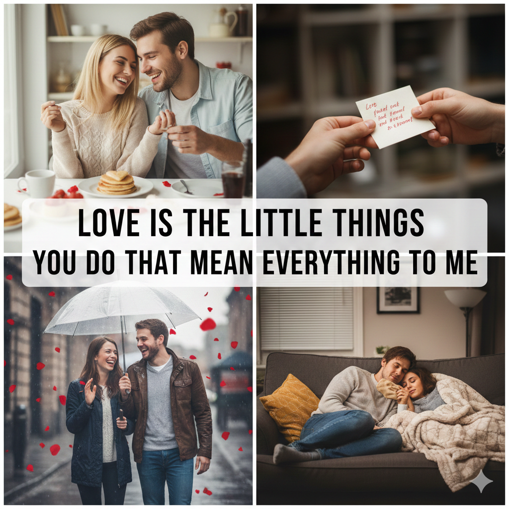 Grand gestures are wonderful, but it’s often the small acts of love that leave the biggest impact. This quote celebrates the quiet moments—checking in, holding hands, and simply being there.