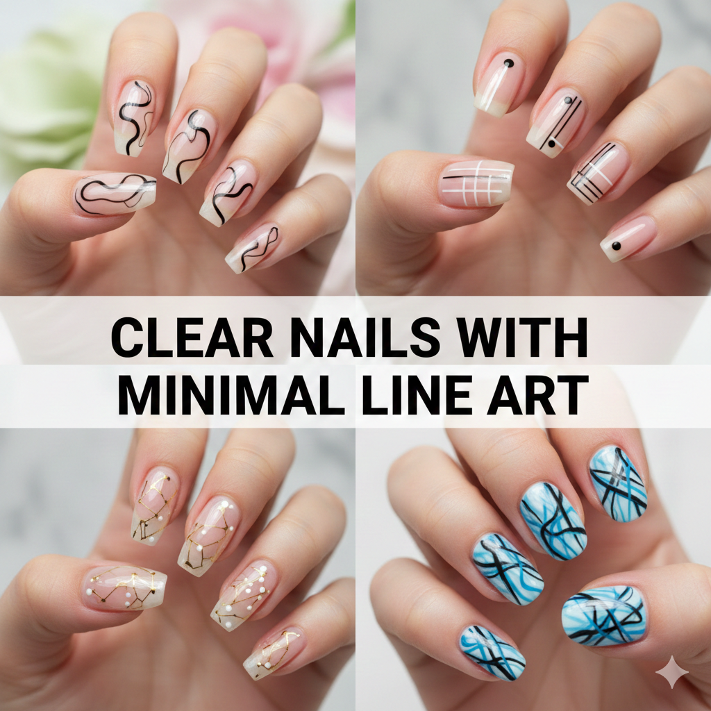 For those who love modern minimalism, clear nails with delicate line art are a standout choice. Think:
