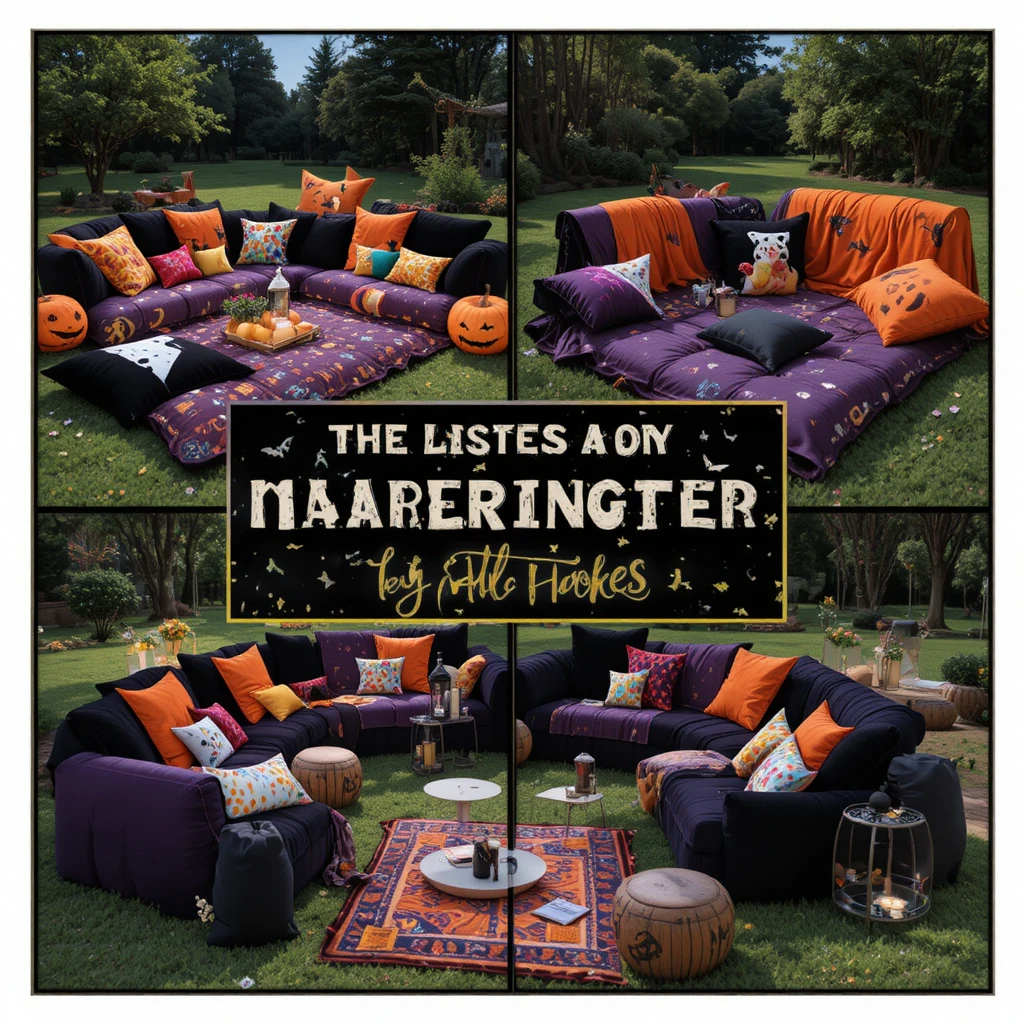 Comfort is key when watching movies outdoors. Arrange blankets, beanbags, and lawn chairs in layers so everyone has a clear view. To stay on theme, use Halloween-colored throws—black, orange, and deep purple—and add a few decorative pillows featuring bats, ghosts, or jack-o’-lanterns.