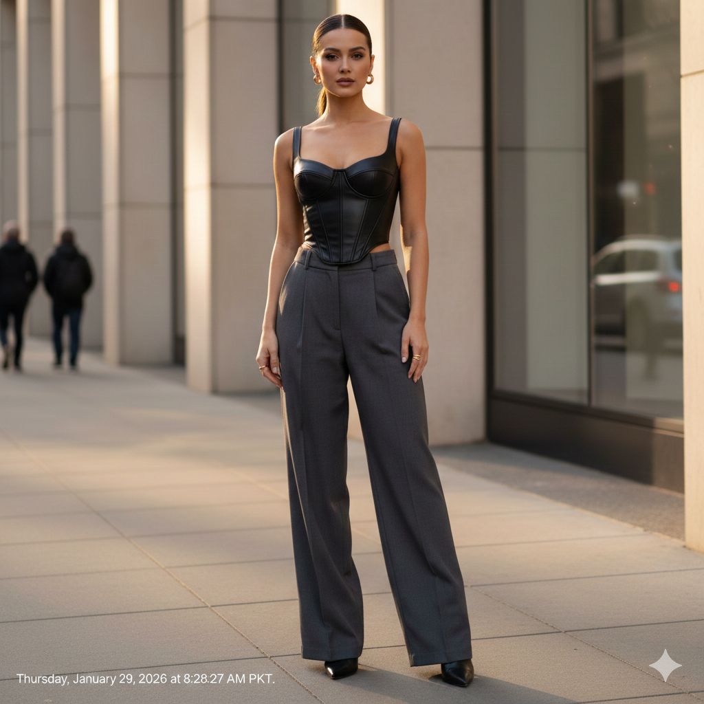 5. Corset Top with High-Waist Pants – Trendy and Flattering