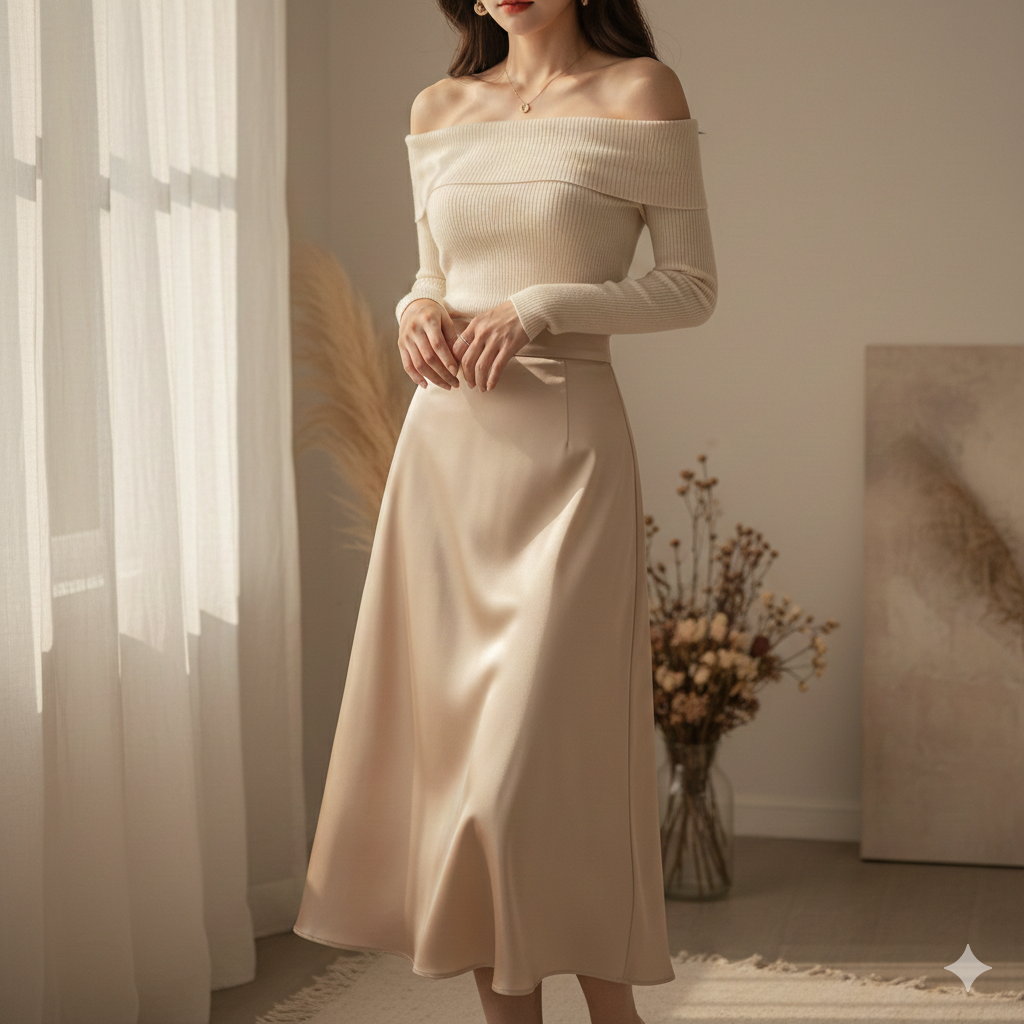 7. Satin Skirt with Fitted Top – Soft Romantic Energy