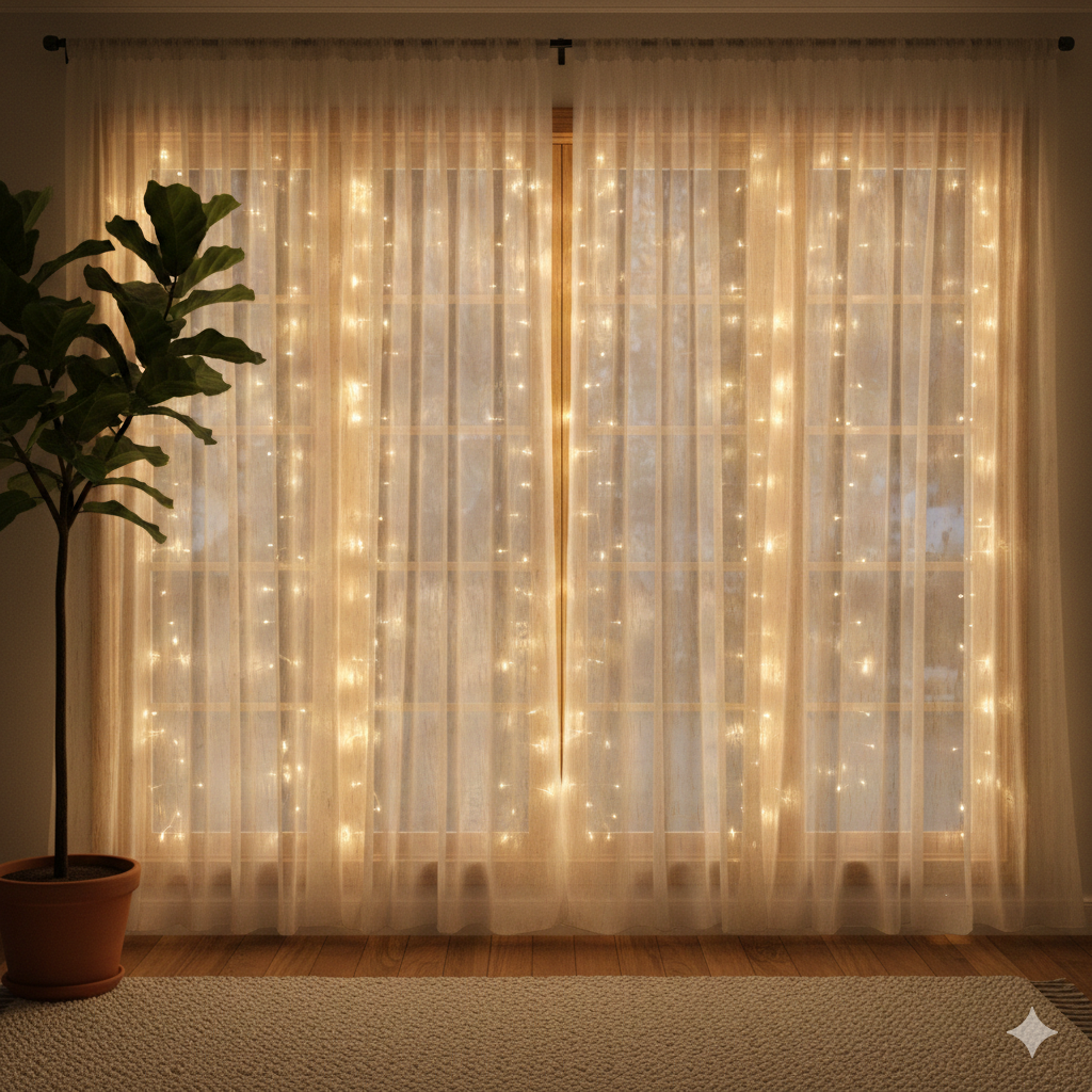3. Fairy Light Frame with Sheer Curtains