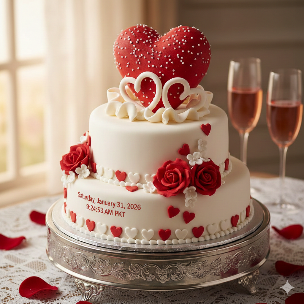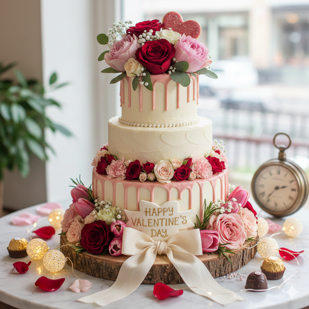 A beautifully decorated cake combined with romantic decor and thoughtful planning creates a complete Valentine’s experience.