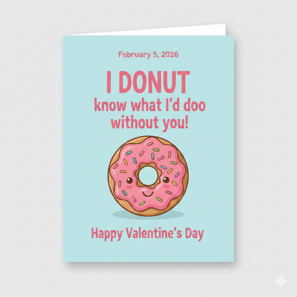 Puns make Valentine’s cards unforgettable. A donut graphic with a sweet message always brings smiles.