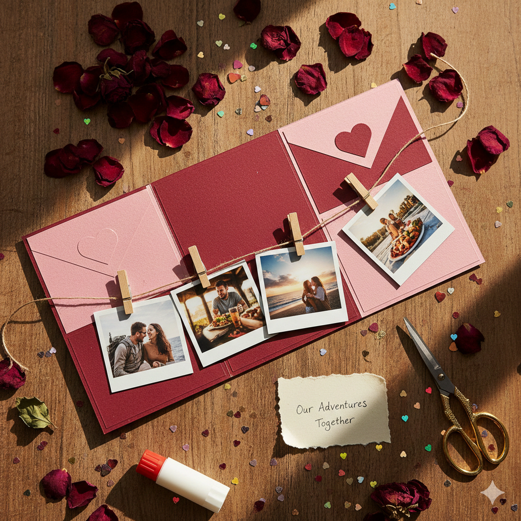 Print mini photos, arrange them creatively, and write short captions under each image. This is one of the most romantic DIY valentine cards you can make.