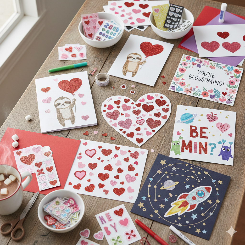 Stickers can instantly make cards look professional. Use heart, rose, or love-themed stickers for quick DIY valentine card craft ideas.