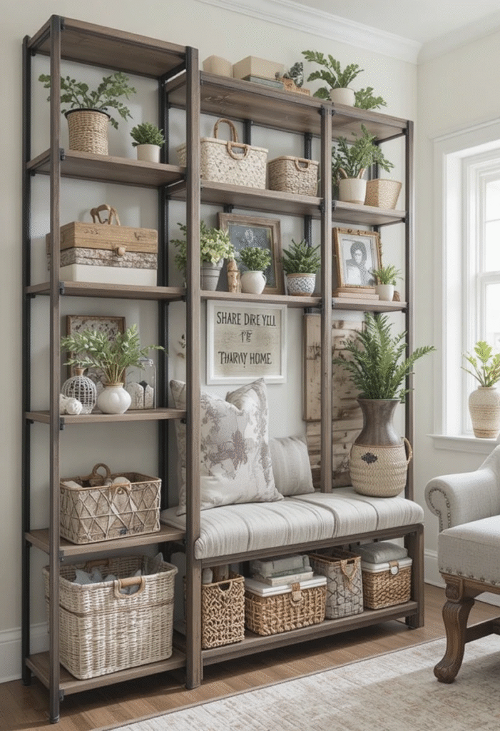 Rentals often lack built-in storage, but clever organization can double as decor.