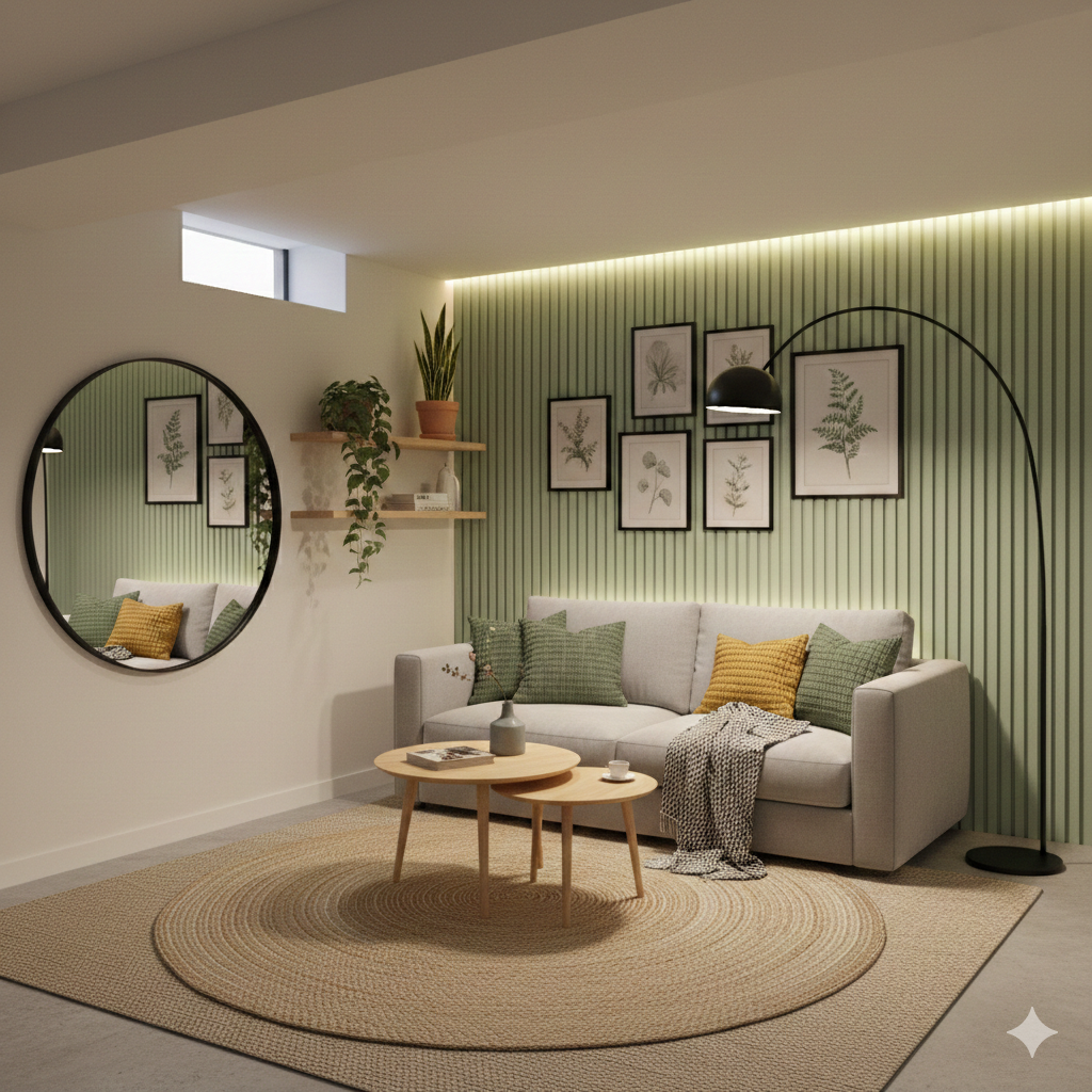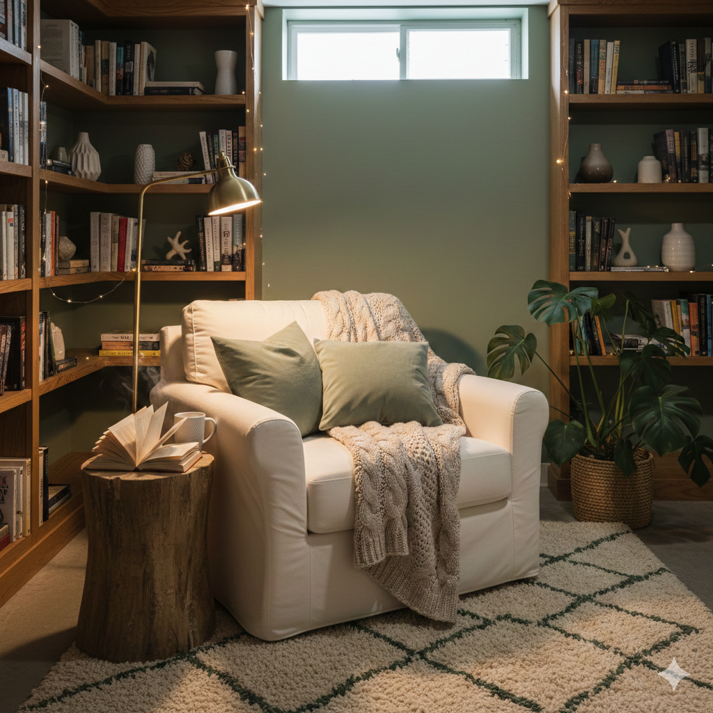 Whether you’re designing a guest room, lounge, office, or reading nook, sage green offers the perfect balance of serenity and sophistication. By combining thoughtful lighting, warm textures, and intentional decor, your basement can become one of the most inviting rooms in your home.