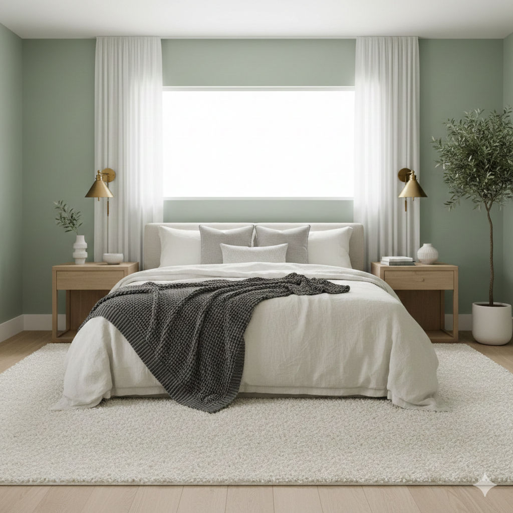 The key here is balance. Sage green provides the calm foundation, while warm neutrals bring depth and coziness.