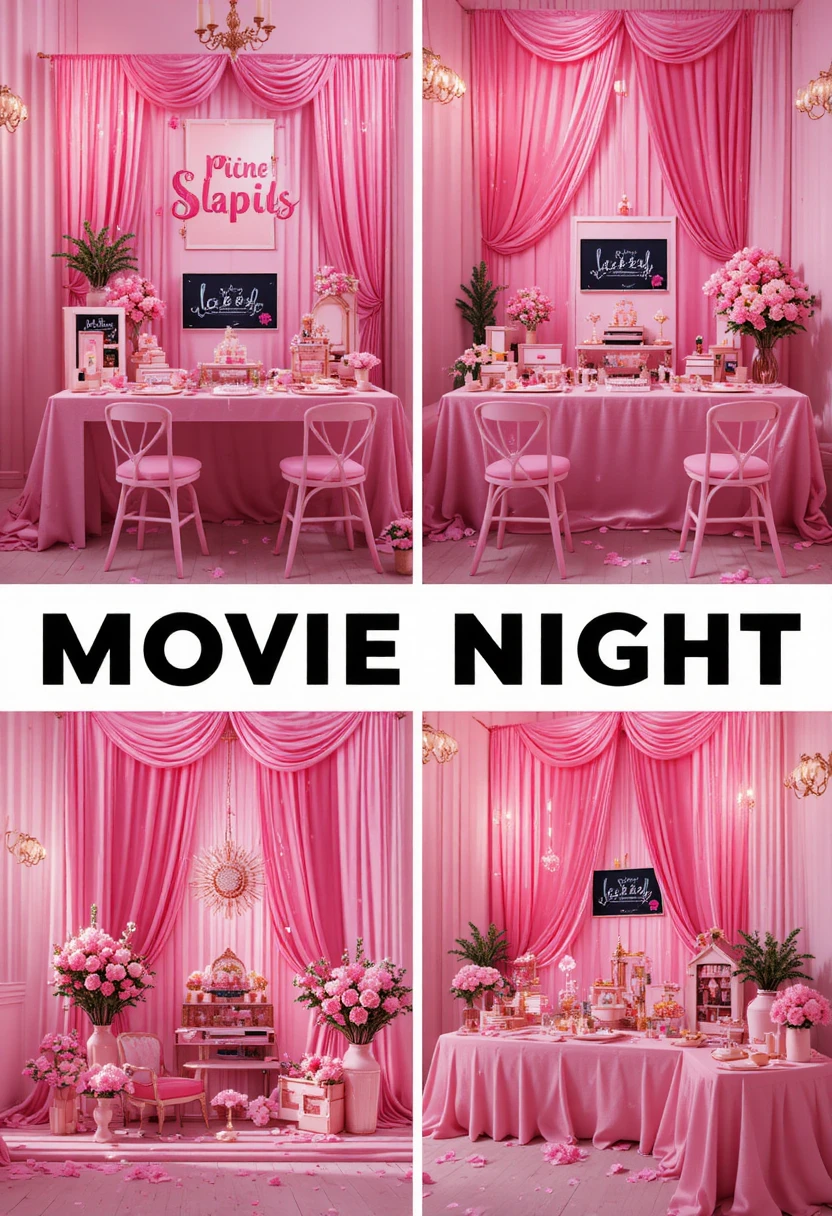 8. Pink-Themed Movie Night Setup