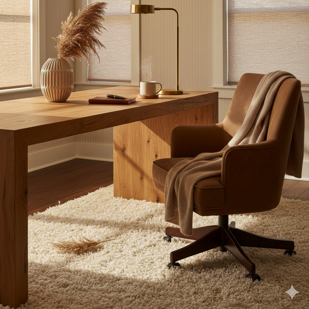 - Furniture: Natural wood tones—like oak or bamboo—bring warmth.