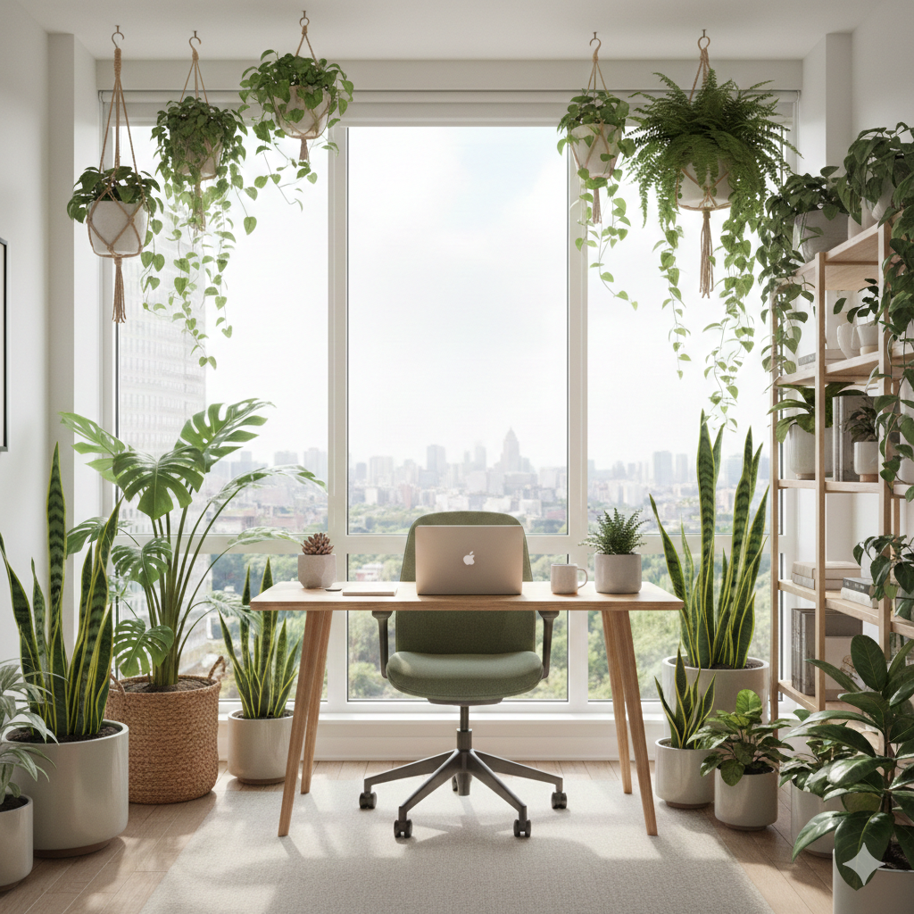 - Low-maintenance plants: Snake plants, pothos, and succulents thrive indoors with minimal care.
