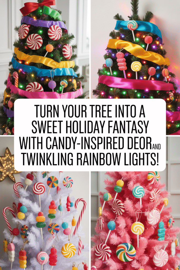 Turn your tree into a sweet holiday fantasy with candy-inspired decor and twinkling rainbow lights! Think peppermint swirls, gumdrop ornaments, lollipop picks, and bold ribbons.