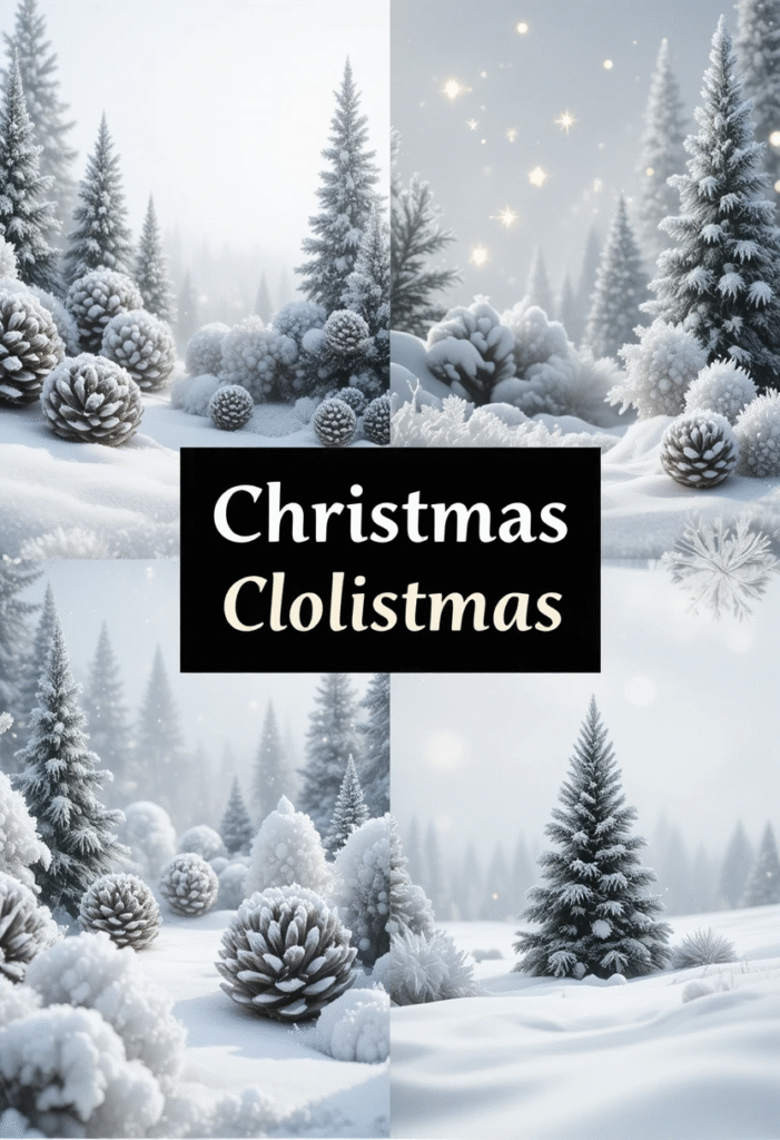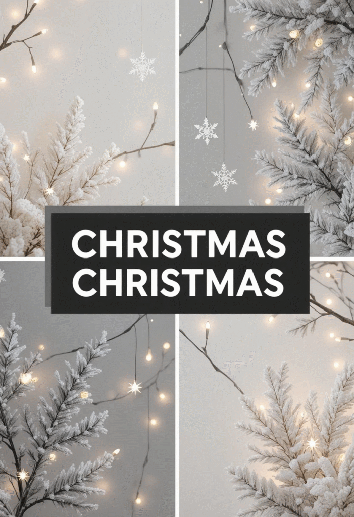 Clean lines, soft textures, and muted tones — this aesthetic is perfect for those who love calm, uncluttered beauty. Picture pale beige backgrounds, frosted pine branches, and delicate string lights.