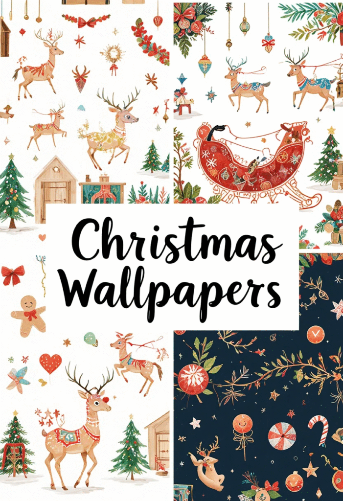 If you love a playful, storybook feel, opt for illustrated Christmas wallpapers featuring reindeer, gingerbread cookies, or Santa’s sleigh. Hand-drawn designs add a cozy, handcrafted touch that feels both fun and personal.