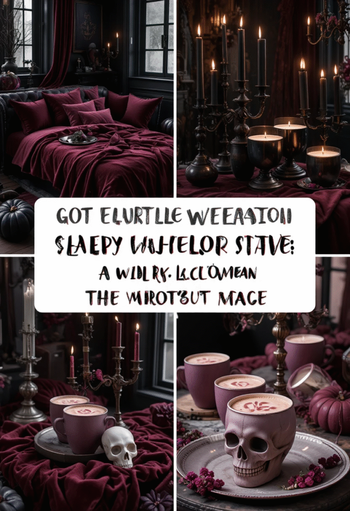 Not every Halloween needs to be outdoors. An indoor setup with gothic-inspired decor can feel just as enchanting. Think velvet throws, black candles, vintage candelabras, and skull-shaped mugs filled with hot cocoa.