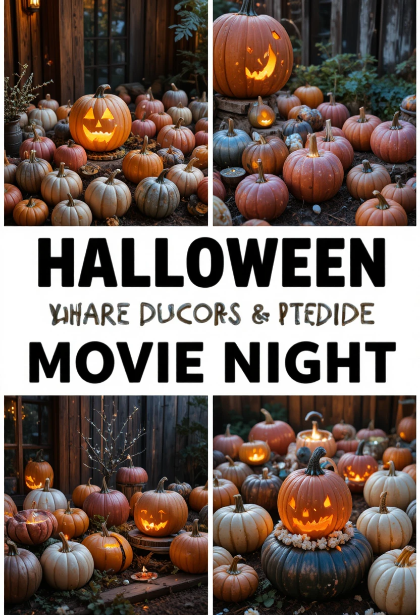 To enhance the aesthetic, paint some pumpkins in metallic tones or add fairy lights inside hollowed ones for a glowing effect. Pair this with fall-themed snacks like caramel apples and spiced popcorn for a cozy seasonal touch.