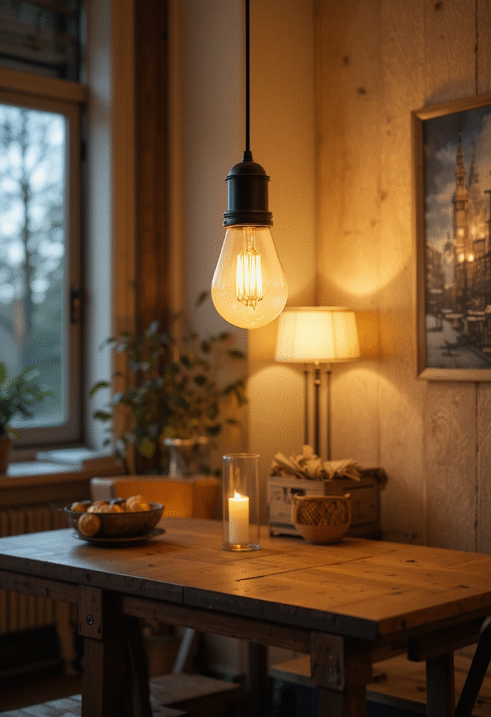 Dining spaces benefit greatly from warm, focused lighting. A pendant light centered above the table creates intimacy and draws attention to shared meals.