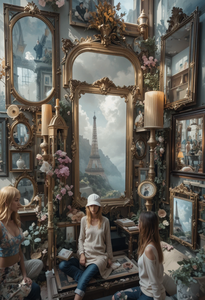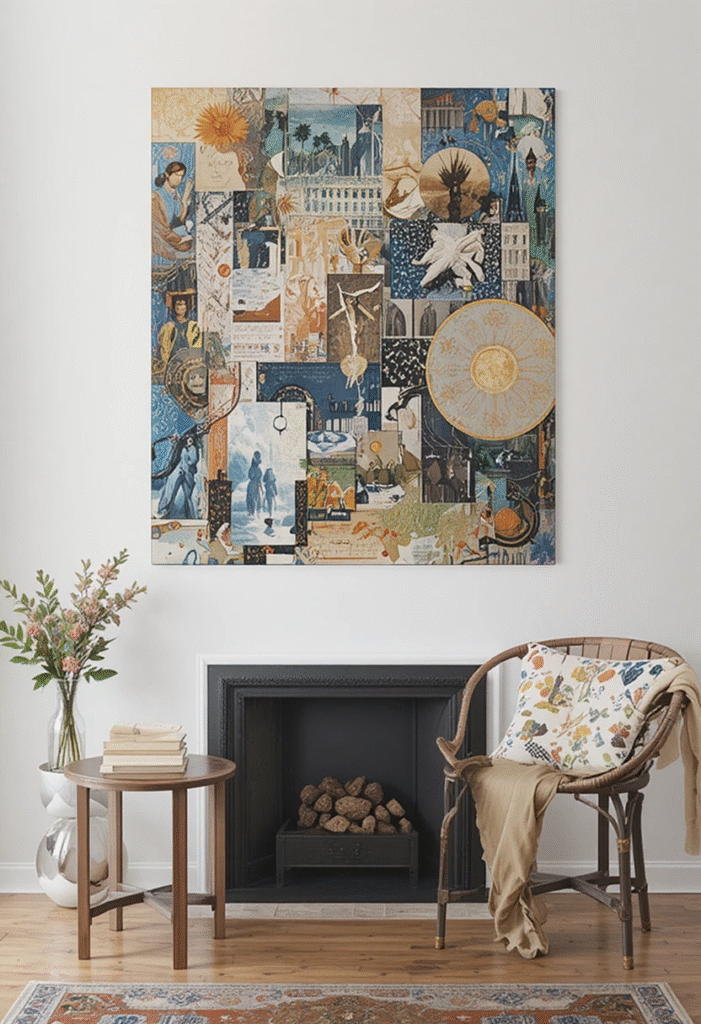 - Mix textures like canvas, metal, or wooden frames