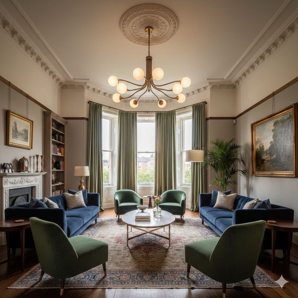 If you’re lucky enough to own an Edwardian home, you already have one of the most beautiful architectural canvases to work with. Built between 1901 and 1910, Edwardian properties are known for their generous proportions, tall ceilings, large bay windows, decorative cornices, and elegant fireplaces. The challenge? Designing a living room that celebrates those features while keeping it fresh, functional, and inviting.