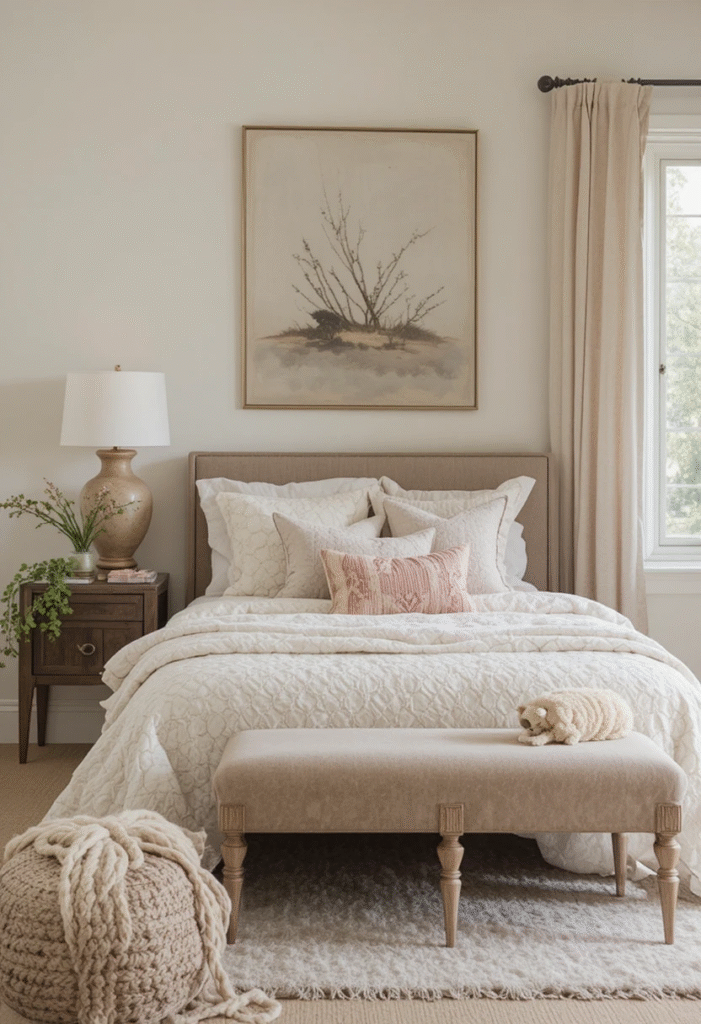 A cohesive palette creates visual comfort the first step in turning a neutral room into a cozy sanctuary.