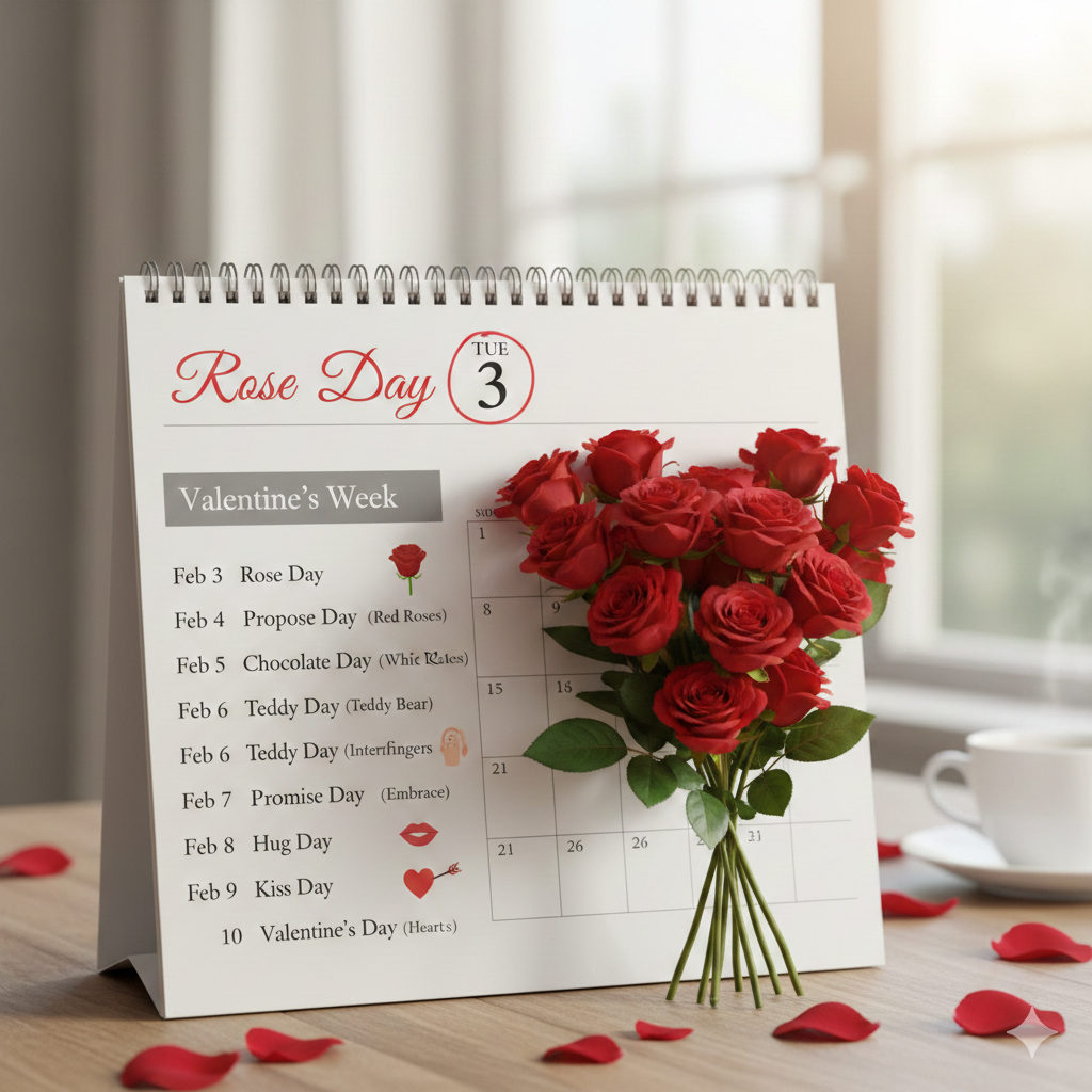 Feb 7 – Rose Day (Start Your Valentines Day Week Chart with Flowers)