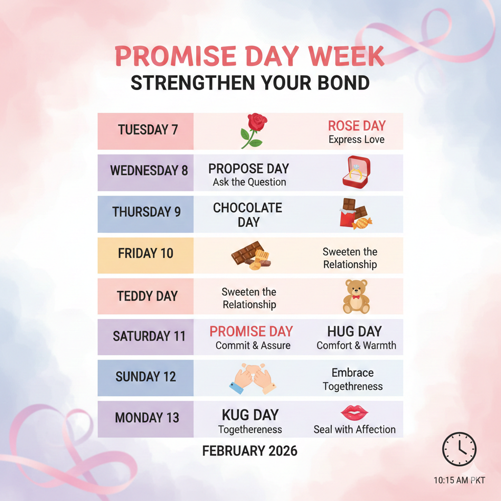| Feb 11 | Promise Day | Make heartfelt promises |