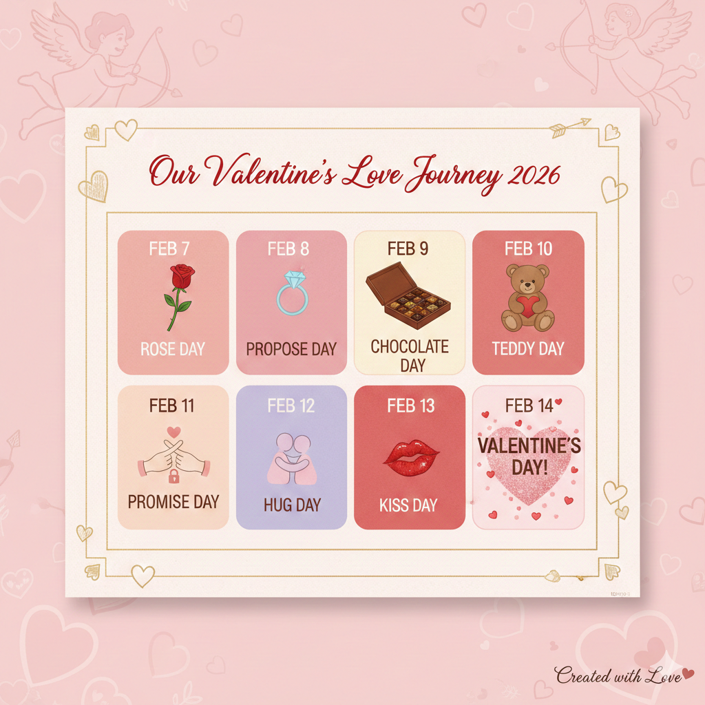A 7 Valentines Day Week chart is not just a list of dates. It is a romantic planner that helps you celebrate love thoughtfully every single day.