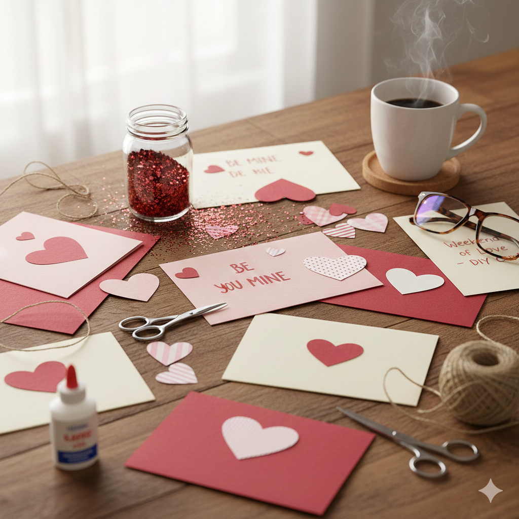 Handmade cards add emotional value to the celebration. Spend Sunday afternoon creating DIY cards for each other.