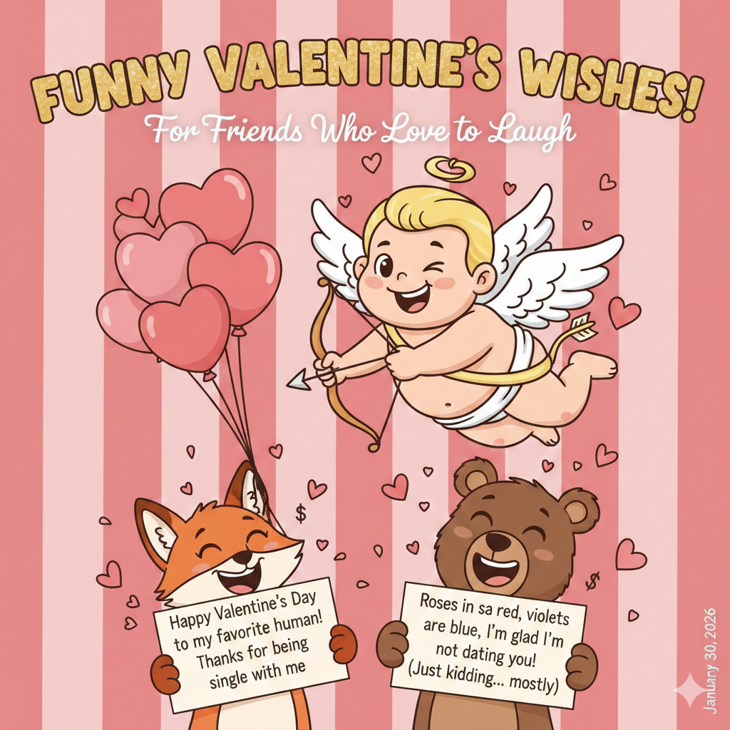 2. Funny Valentine’s Day Wishes for Friends Who Love Humor
