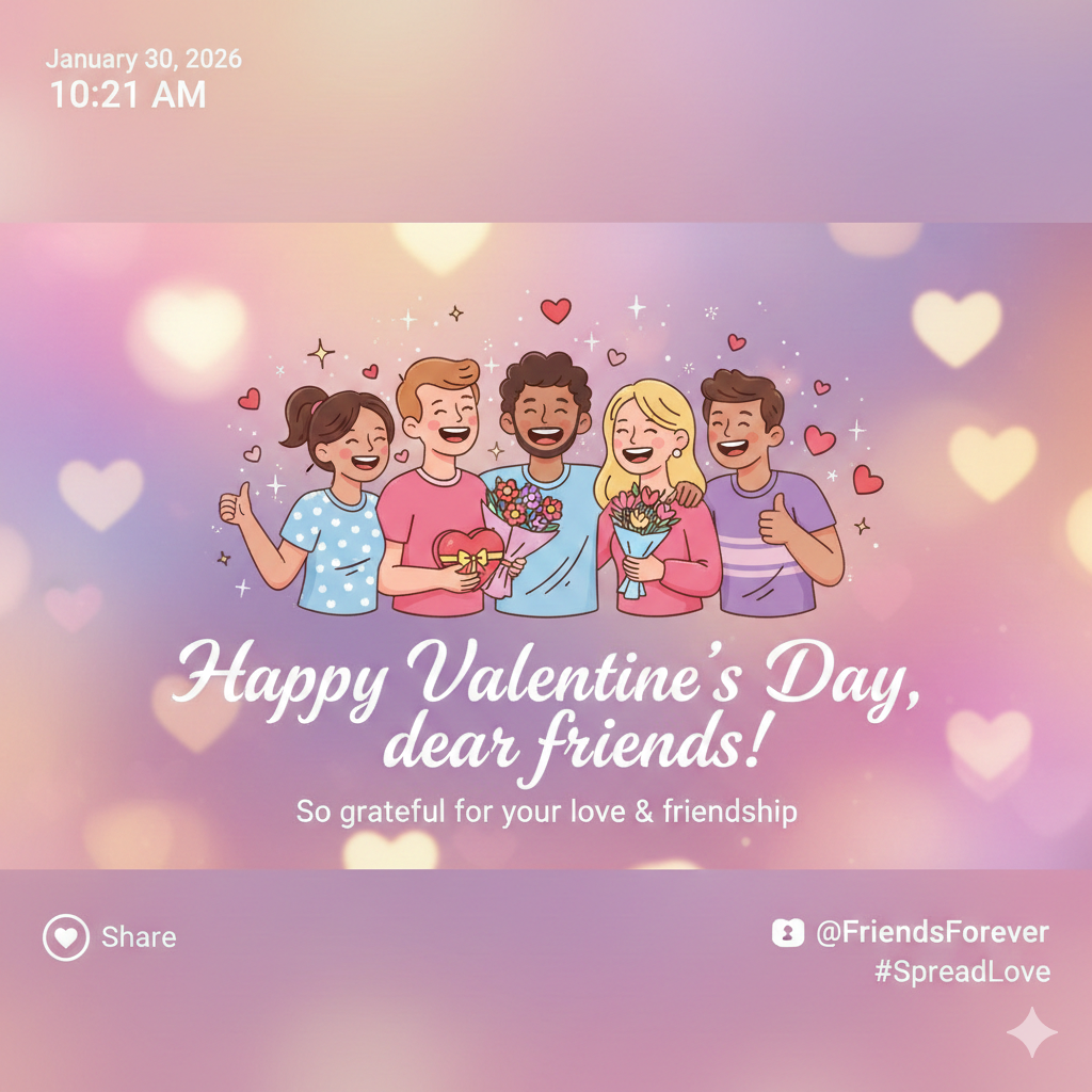 Valentine’s Day is not only about couples and romance. It’s also the perfect time to celebrate the beautiful bond of friendship. Your friends are the ones who stand by you, support you, laugh with you, and make life brighter every day. Sending thoughtful Valentine’s Day wishes for friends is a wonderful way to remind them how much they mean to you.